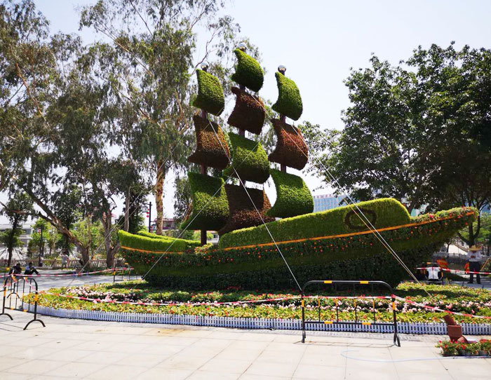 第一,主題。主題是一個綠雕的核心和靈魂。在設計綠雕時,我們要結合綠雕的使用場景來確定主題,比如在活動慶典類場景使用綠雕時,我們要根據活動的性質來確定綠雕的主題。設計綠雕要有清晰的構思和明確的主題,并將主題較為直觀地表現在整個綠雕設計中,讓人們能夠領會到綠雕的深刻內涵。